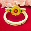 100% authentic micro-gold plated ornament with 1 year color guarantee. Fabulous finish and a true replica of gold. Unbeatable outlook and will give the best satisfaction. best quality unbeatable Sankha accomplished with all efforts.
